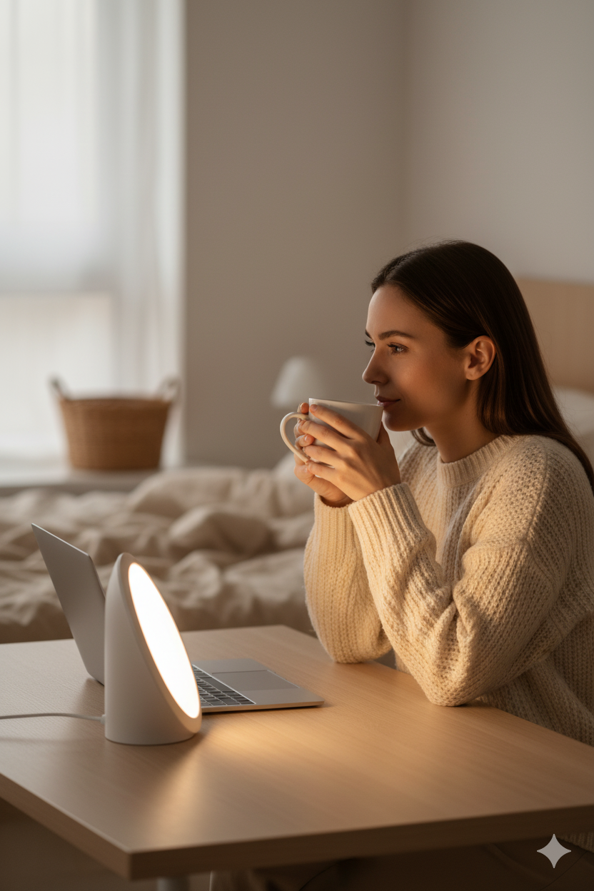 Une exposition régulière à la lumière intense aide à retrouver ton énergie, à stabiliser ton humeur et à réduire les coups de fatigue ou de démotivation liés à la grisaille.